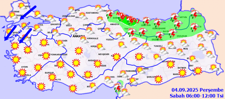 ANKARA (İGFA) – Meteoroloji Genel Müdürlüğü, 4 Eylül 2025 Perşembe gününe ilişkin hava tahmin raporunu yayımladı.